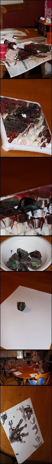 I also borrowed the cute scallop punches then Brayden and I went out and collected a bunch of sticks in a grove behind our house. We got home and Brayden helped me punch holes in the "leafs" and arrange the sticks in the vase.